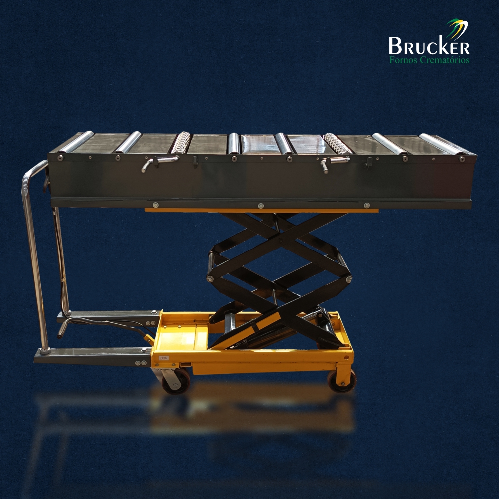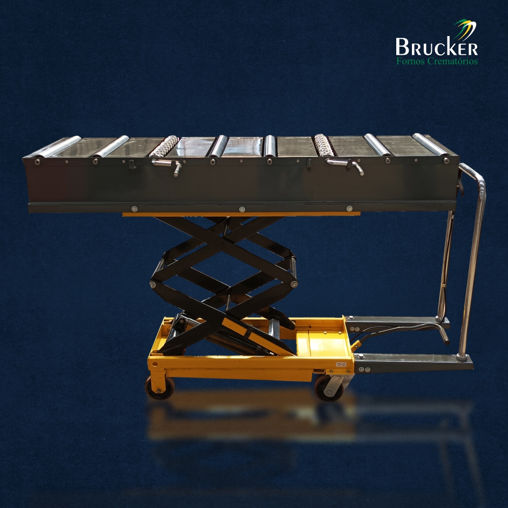 O sistema de elevação hidráulica integrado permite o ajuste de altura conforme a necessidade, proporcionando ergonomia e precisão no posicionamento do corpo para inserção em fornos crematórios ou câmaras. O design robusto e funcional atende às normas de biossegurança, garantindo um processo eficiente, respeitoso e em conformidade com os padrões sanitários.