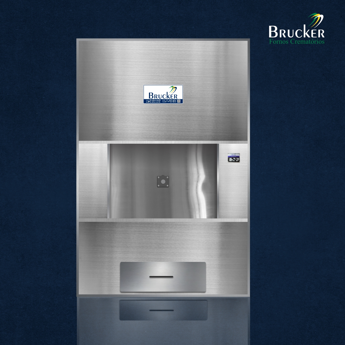 A porta do forno crematório da Brucker funciona em sistema de guilhotina por sistema automatizado.